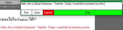 สามารถเปลี่ยนข้อความ เลือกสีและเลือก Font ต่างๆ แล้วใช้เม้าส์ลากบนหน้าจอจุดที่ต้องการวางข้อความ