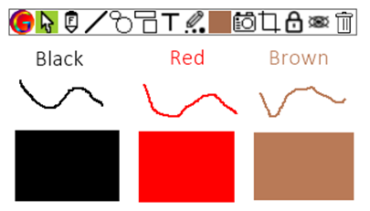 เตรื่องมือตั้งสีของปากกา (Pen Color) ใช้สำหรับตั้งสีและความโปร่งแสงของปากกา ที่ใช้ทำการวาดรูปต่างๆ เมื่อคลิ๊กที่ปุ่มเครื่องมือนี้ จะปรากฏหน้าต่างใหม่ขึ้นดังภาพ สามารถคลิ๊กที่ช่องต่างๆเพื่อเลือกสี หรือระดับความโปร่งแสงใด้ตามต้องการ
