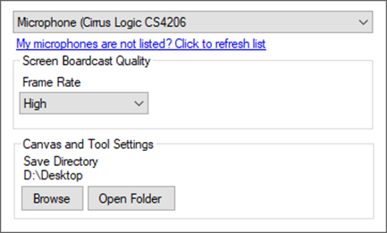 หน้า Settings ของผู้สอนสามารถเลือกอุปกรณ์บันทึกเสียง