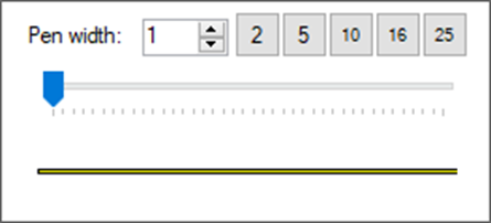 เครื่องมือตั้งความกว้างของปากกา (Pen width) ใช้สำหรับตั้งค่าความกว้างของปากกาในการวาดรูปต่างๆ เมื่อคลิ๊กที่ปุ่มเครื่องมือนี้ จะปรากฏหน้าต่างใหม่ขึ้นดังภาพ