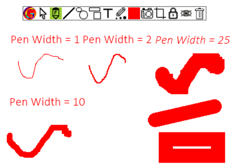 รูปภาพตัวอย่าง ของการตั้งค่าความกว้างของปากกา (Pen width)