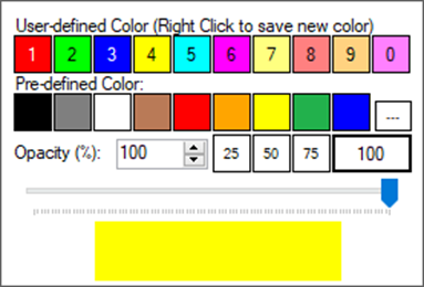 เตรื่องมือตั้งสีของปากกา (Pen Color) ใช้สำหรับตั้งสีและความโปร่งแสงของปากกา ที่ใช้ทำการวาดรูปต่างๆ เมื่อคลิ๊กที่ปุ่มเครื่องมือนี้ จะปรากฏหน้าต่างใหม่ขึ้นดังภาพ สามารถคลิ๊กที่ช่องต่างๆเพื่อเลือกสี หรือระดับความโปร่งแสงใด้ตามต้องการ
